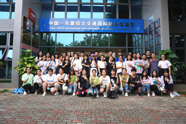 交通学院实验科科长吴诗林老师首先给同学们介绍“中国-东盟综合交通国际联合实验室”的基本情况,随后带领同学们走进汽车工程实训室,同学们对各种类型的发动机、新能源汽车充满了好奇,认真听讲。