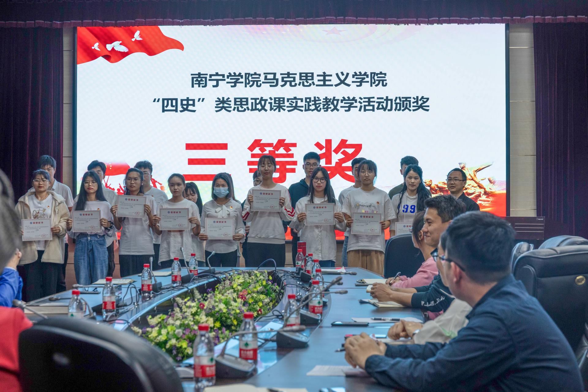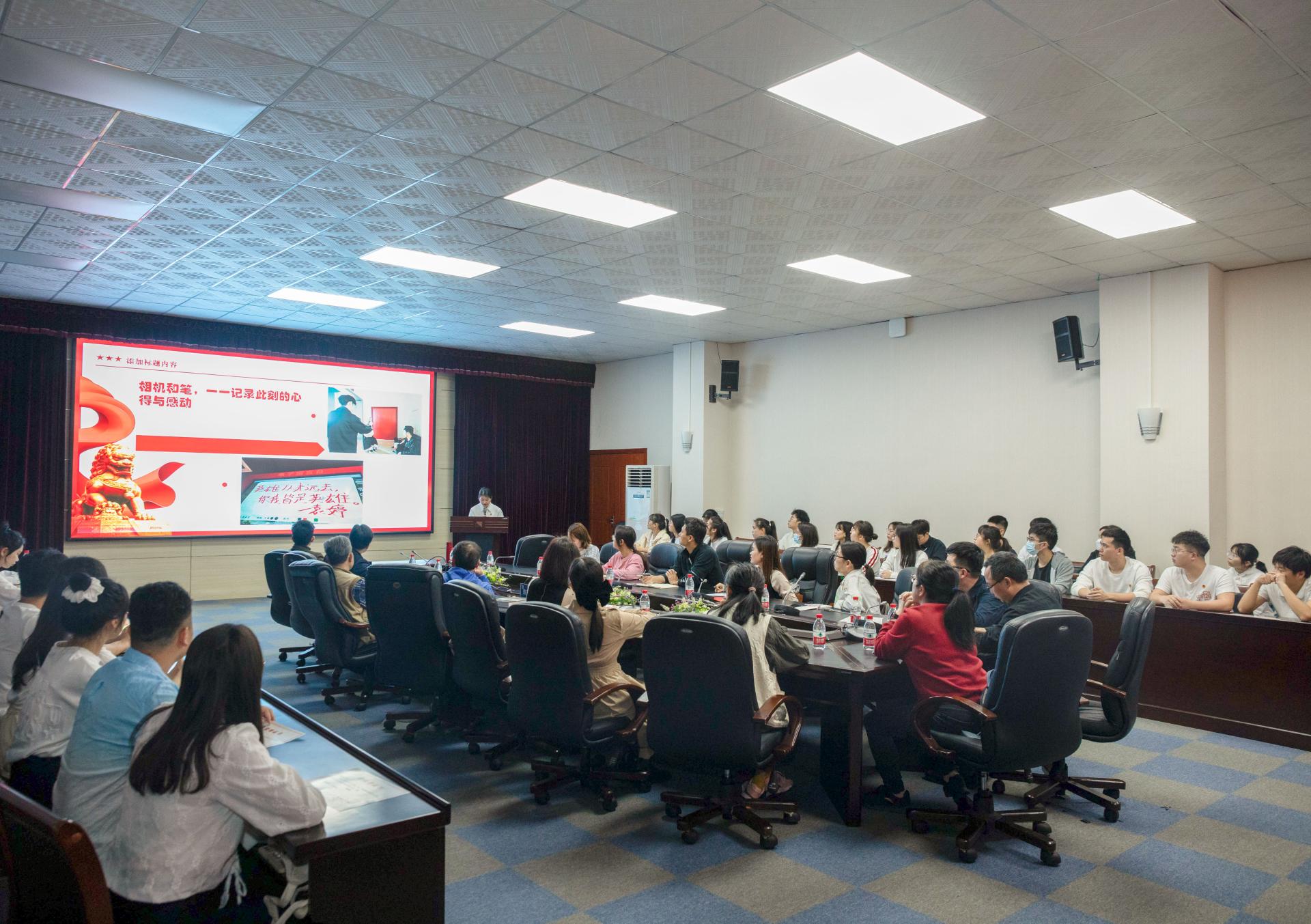 活动分为三个环节。第一环节为“四史”类思政课实践教学活动中获奖的师生颁奖;第二环节由获奖师生进行分享,荣获“优秀指导教师”称号的耿悦老师就如何指导学生通过“红色走读”等方式,深入革命遗址、革命纪念馆等进行学习考察方面进行分享,引导学生从围绕学习英雄,到崇尚英雄,再到致敬英雄,最后达到赓续英雄精神的实践教学效果。荣获实践作品一等奖的杨希文同学代表发言,分享了在英雄主题作品创作中,团队何如深挖广西本土革命先烈、英雄模范等人物的典型事迹,并就新时代大学生如何传承先烈遗志、英雄精神等展开阐述。第三环节,由陈雄章教授作《厚植英雄情怀 涵养扎实学风——以桂南会战阵亡将士纪念遗址调研为例》的主题讲座。