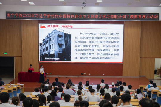为深入贯彻落实习近平总书记关于“大思政课”的重要指示批示精神,引导学生深刻认识“两个确立”的决定性意义,自觉从党的重大成就和历史经验中增长智慧,增强信心,用青春奏响“强国复兴有我”的时代强音,以实际行动迎接党的二十大胜利召开。从2022年3月开始,学校启动南宁学院2022年习近平新时代中国特色社会主义思想大学习领航计划主题教育活动。历时三个月的运作,6月8日,领航计划主题教育展示活动总决赛在大学生活动中心103举行。