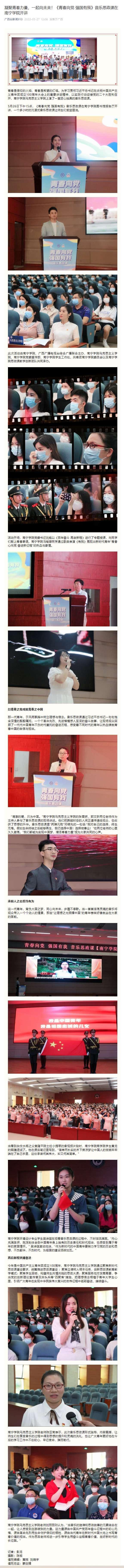 广西台新闻910报道链接:凝聚青春力量,一起向未来!《青春向党 强国有我》音乐思政课在南宁学院开讲https://mp.weixin.qq.com/s/T3pKIdYhDtpuC8VmyopvDw