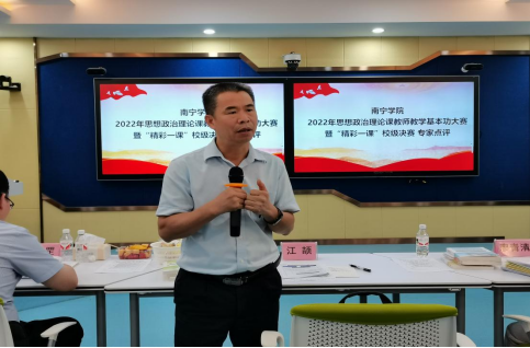为进一步提升我校思想政治理论课教师的教育教学能力,提升思政课教学质量和思政课教师教学竞赛水平,选拔优秀教师参加全区思想政治理论课教师教学基本功大赛暨“精彩一课”评选活动,7月6日上午,由南宁学院教务处主办、马克思主义学院承办的2022年思想政治理论课教师教学基本功大赛暨“精彩一课”校级决赛评选活动在敷文园C-310举办,活动邀请广西水利电力职业技术学院院长江颉、广西民族大学马克思主义学院副院长梁罡、南宁职业技术学院马克思主义学院博士廖青清、广西艺术学院马克思主义学院概论课教研室主任宋晓甜以及我校马克思主义学院院长董艳担任评委。经教师申报、教研室推荐、初赛选拔等环节,最终来自全校的十余名思想政治理论课教师参加了此次比赛。马克思主义学院全体教师观摩校级决赛,比赛由马克思主义学院郭文昕老师主持。