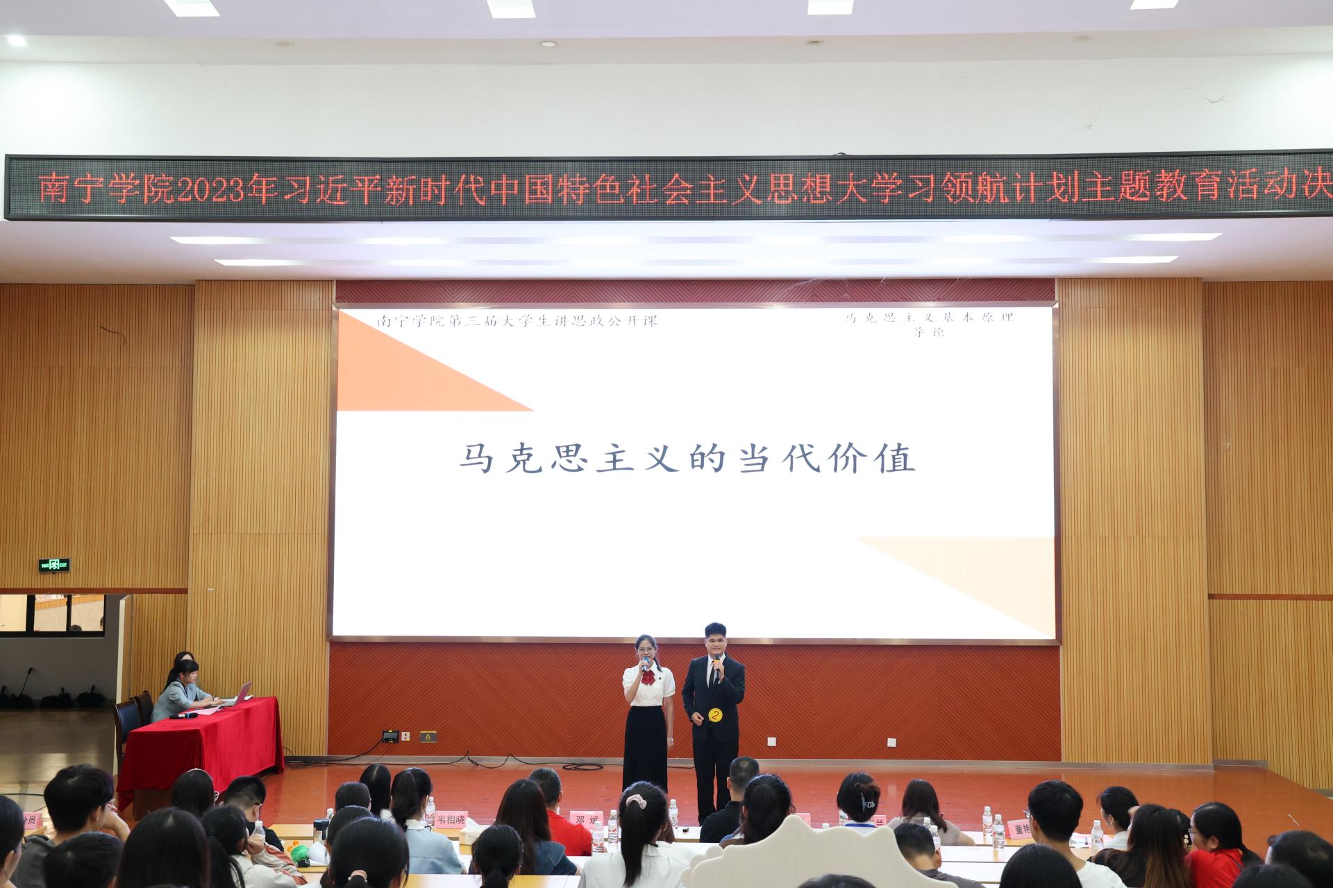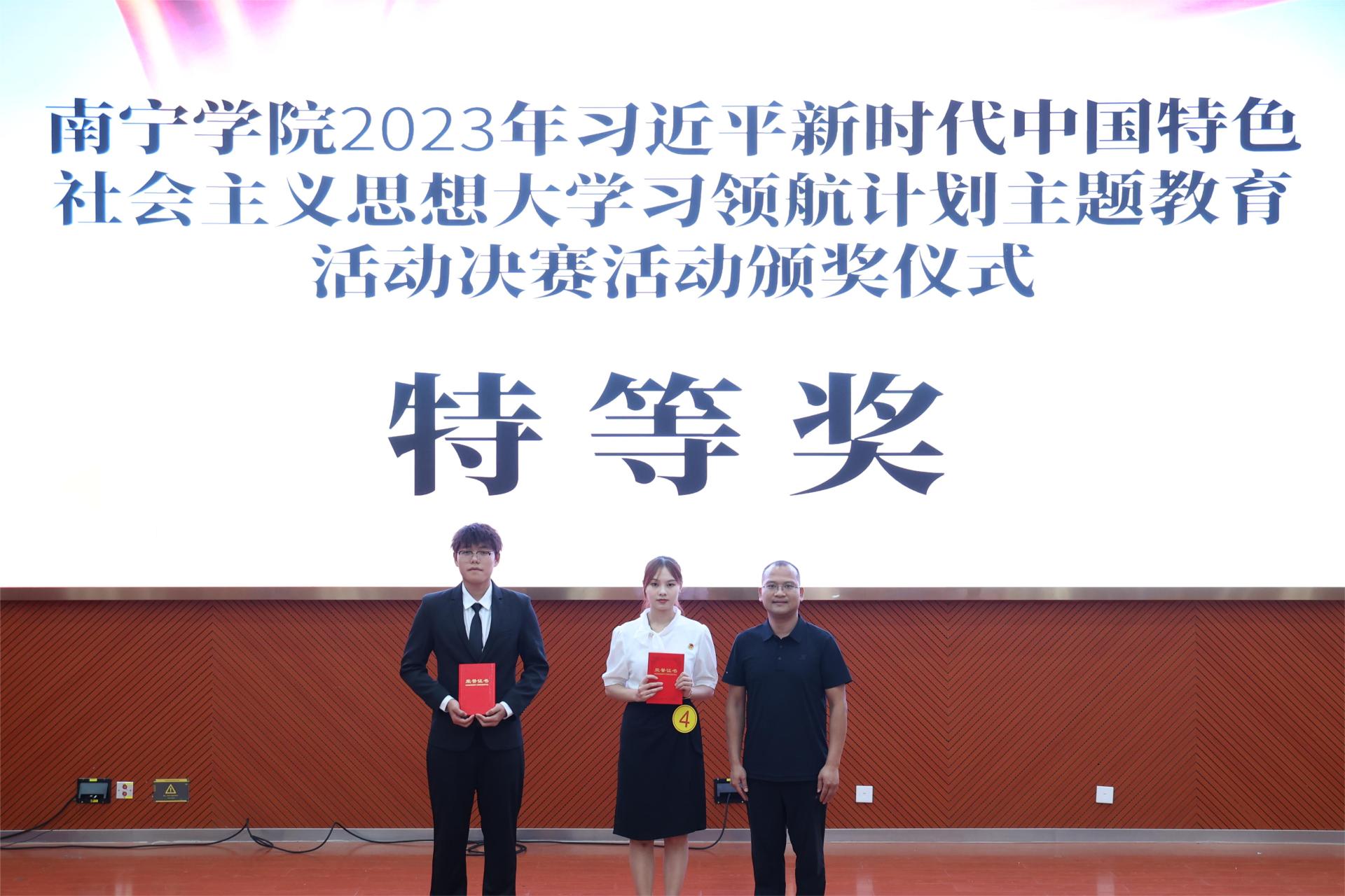 为坚持不懈用习近平新时代中国特色社会主义思想铸魂育人,充分发挥“大思政课”实践教学育人作用,用新时代十年伟大变革的生动实践把道理讲深、讲透、讲活,不断提高思政课的针对性和吸引力,引导学生深刻领悟“两个确立”的决定性意义,增强“四个意识”、坚定“四个自信”、做到“两个维护”,坚定不移听党话、跟党走,2023年3月,学校启动南宁学院2023年习近平新时代中国特色社会主义思想大学习领航计划主题教育活动。历时三个月的运作,6月25日,“领航计划”主题教育活动总决赛在大学生活动中心103举行。