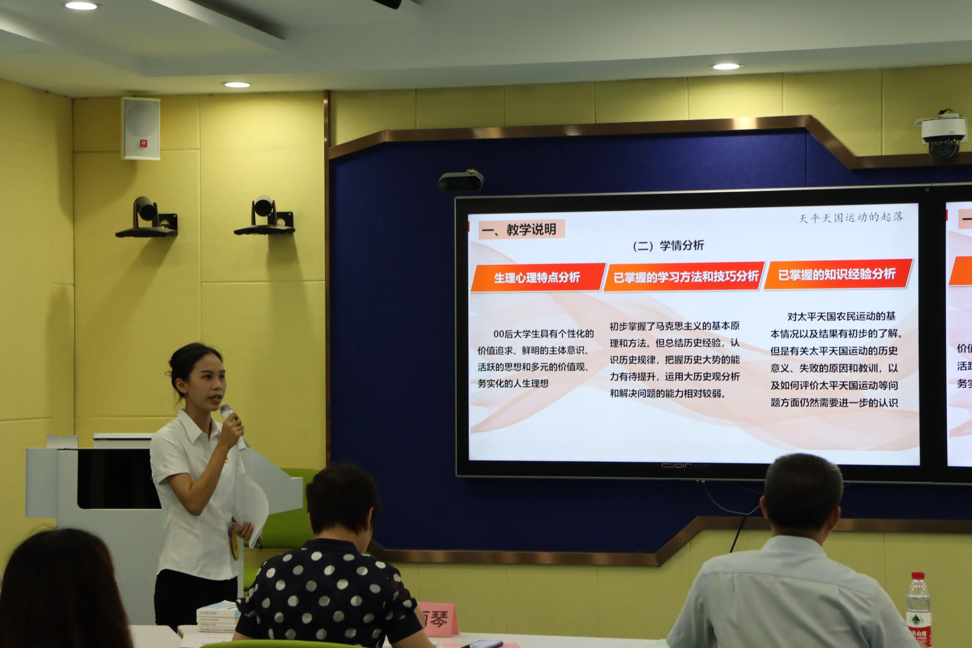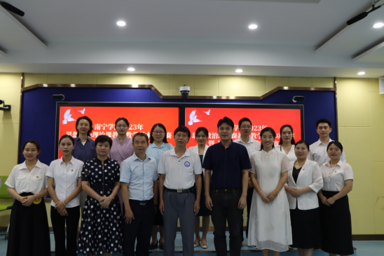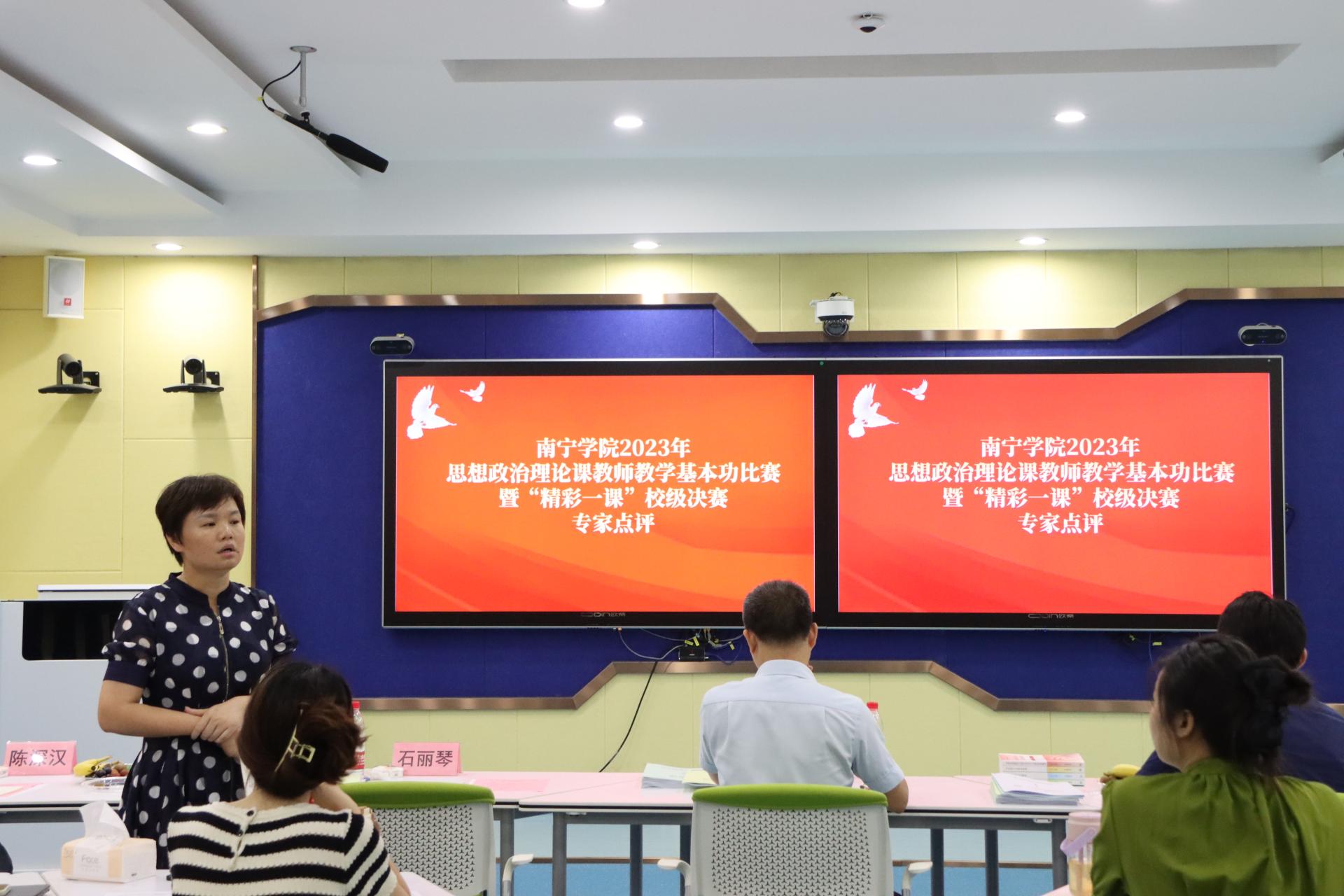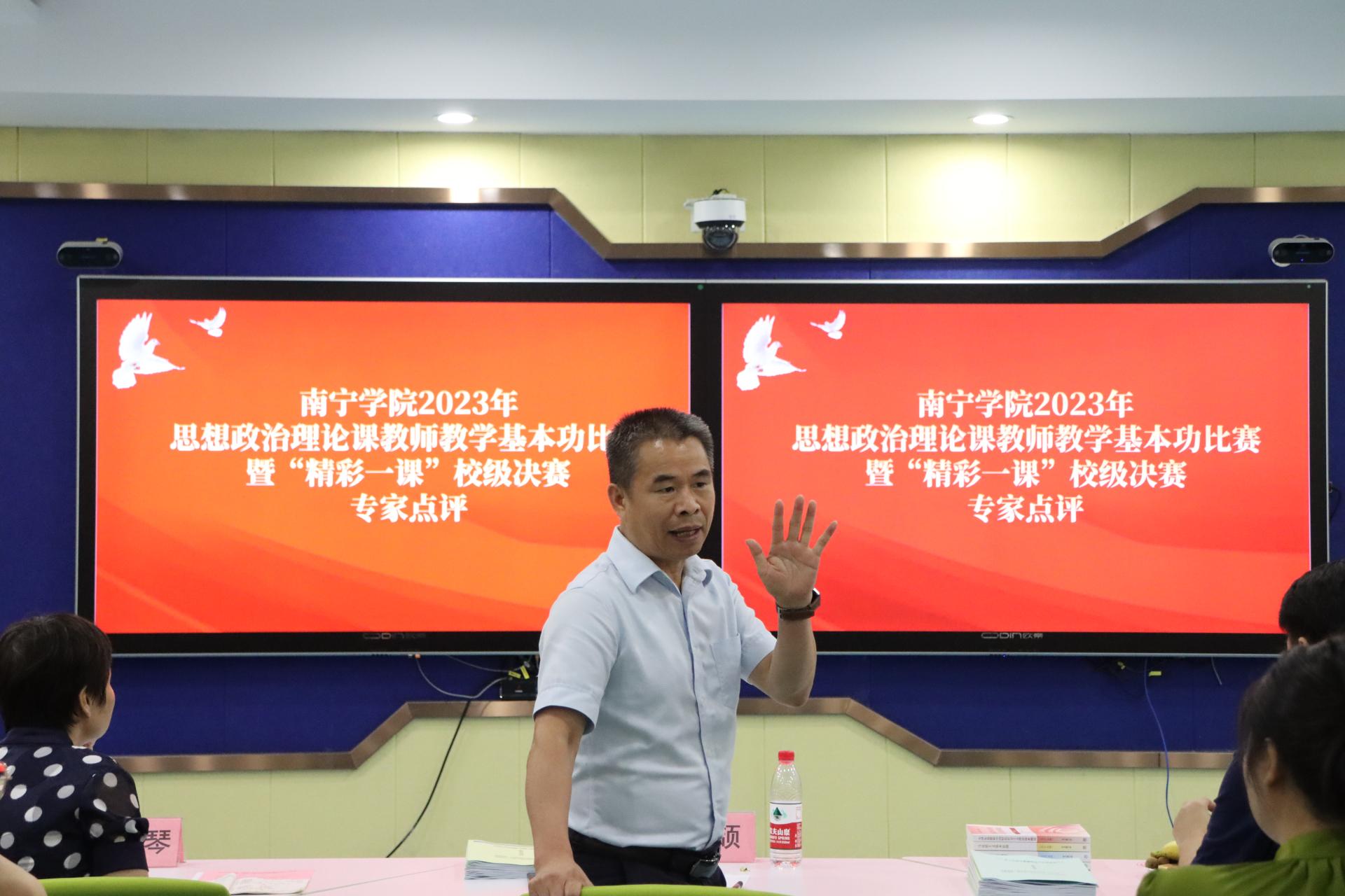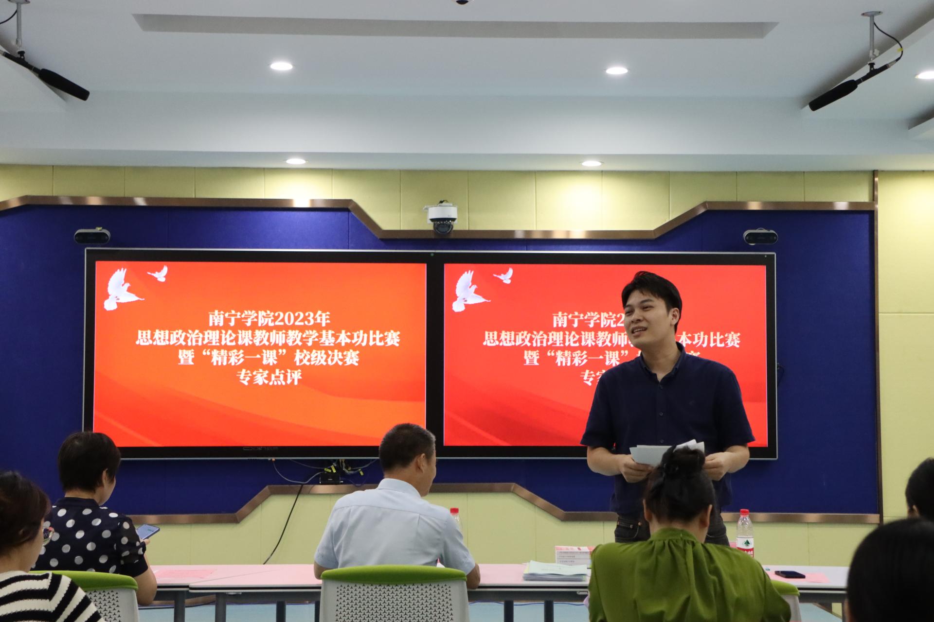 为深入学习贯彻党的二十大精神,推动思政课教师不断提升教学水平和综合素质,7月6日下午,2023年思想政治理论课教师教学基本功大赛暨“精彩一课”评选活动在敷文园C310进行。本次比赛邀请广西水利电力职业技术学院马克思主义学院江颉教授、南宁师范大学马克思主义副院长石丽琴博士、广西建设职业技术学院马克思主义学院副院长李生副教授、我校马克思主义学院陈深汉教授以及院长董艳副教授担任评委。马克思主义学院全体教师到场观摩学习。