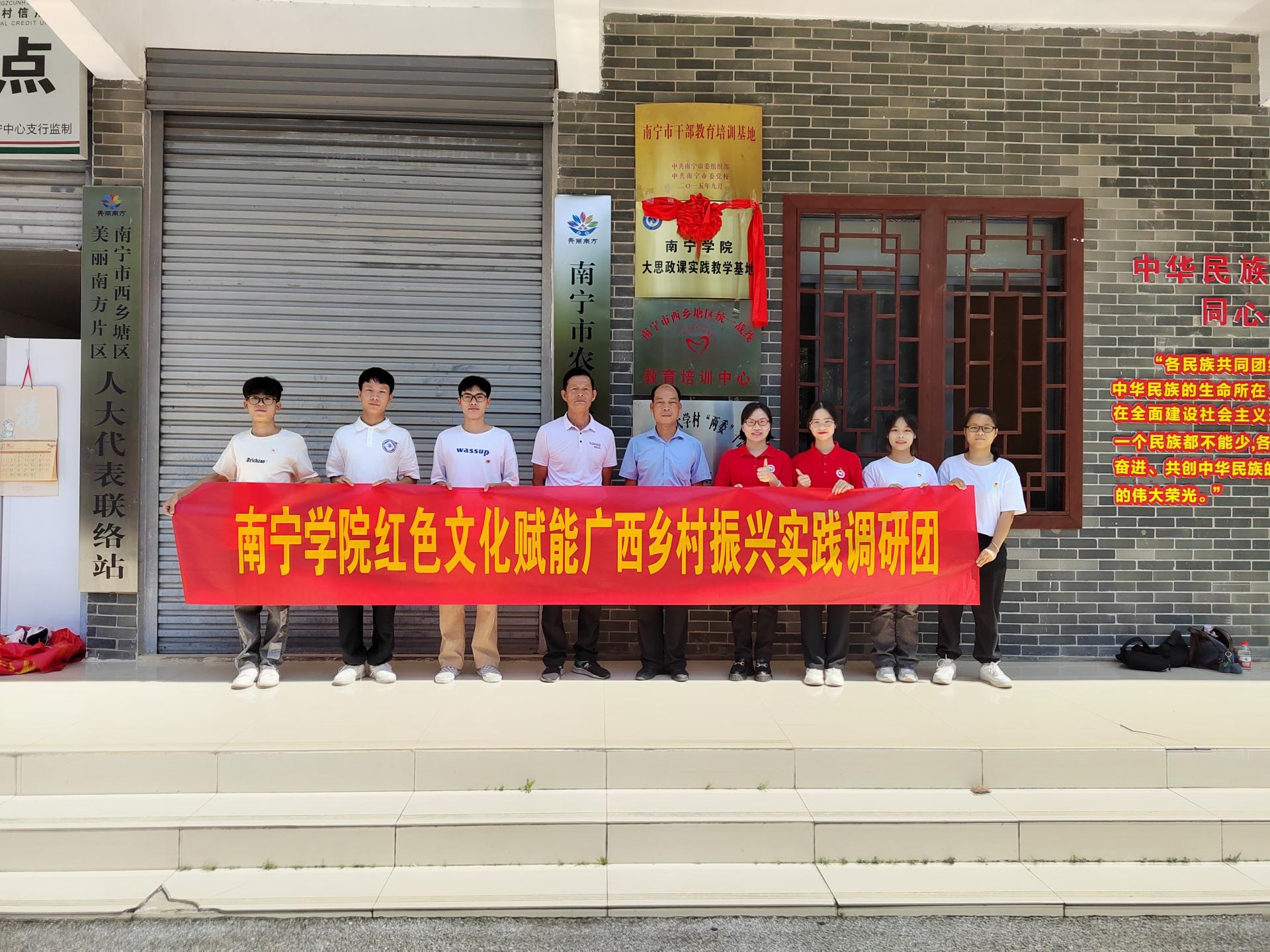 为保证深入学习宣传贯彻党的二十大精神,以习近平总书记关于“大思政课”的重要指示精神为指导,带领学生踏寻红色足迹,走进田间地头,深入工厂社区,将思政课堂向生产劳动和社会实践第一线延伸。8月31日,南宁学院乡村振兴研究所教师代表带队赴南宁市美丽南方忠良村开展实践调研活动。本次调研的主题是:红色文化赋能广西乡村振兴的实践路径。调研活动主要分为三个部分: