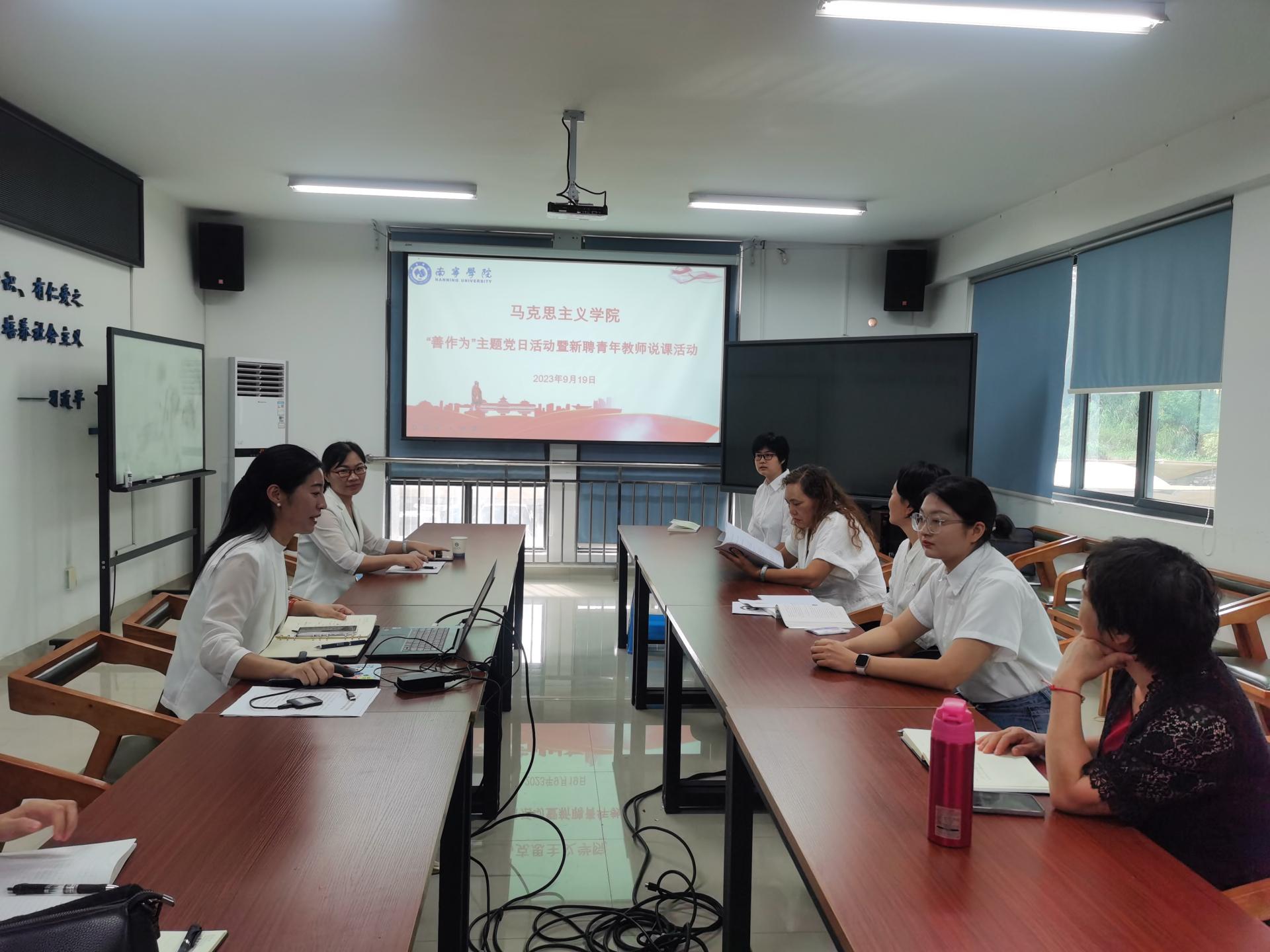 为深入学习贯彻党的二十大精神,传承优良作风,勤廉守正、实干担当,不断提升教师教学能力和人才培养质量,9月19日下午,马克思主义学院开展“善作为”主题党日活动暨新聘教师说课活动。说课活动分别在行政楼123与125会议室开展,新聘教师赵易、黄娟、黄胆志、卢诗杰、李玉香、王彦淇、夏宇、谢雨欣、刘姗姗等9位教师进行了说课,学院全体教师参与研讨。