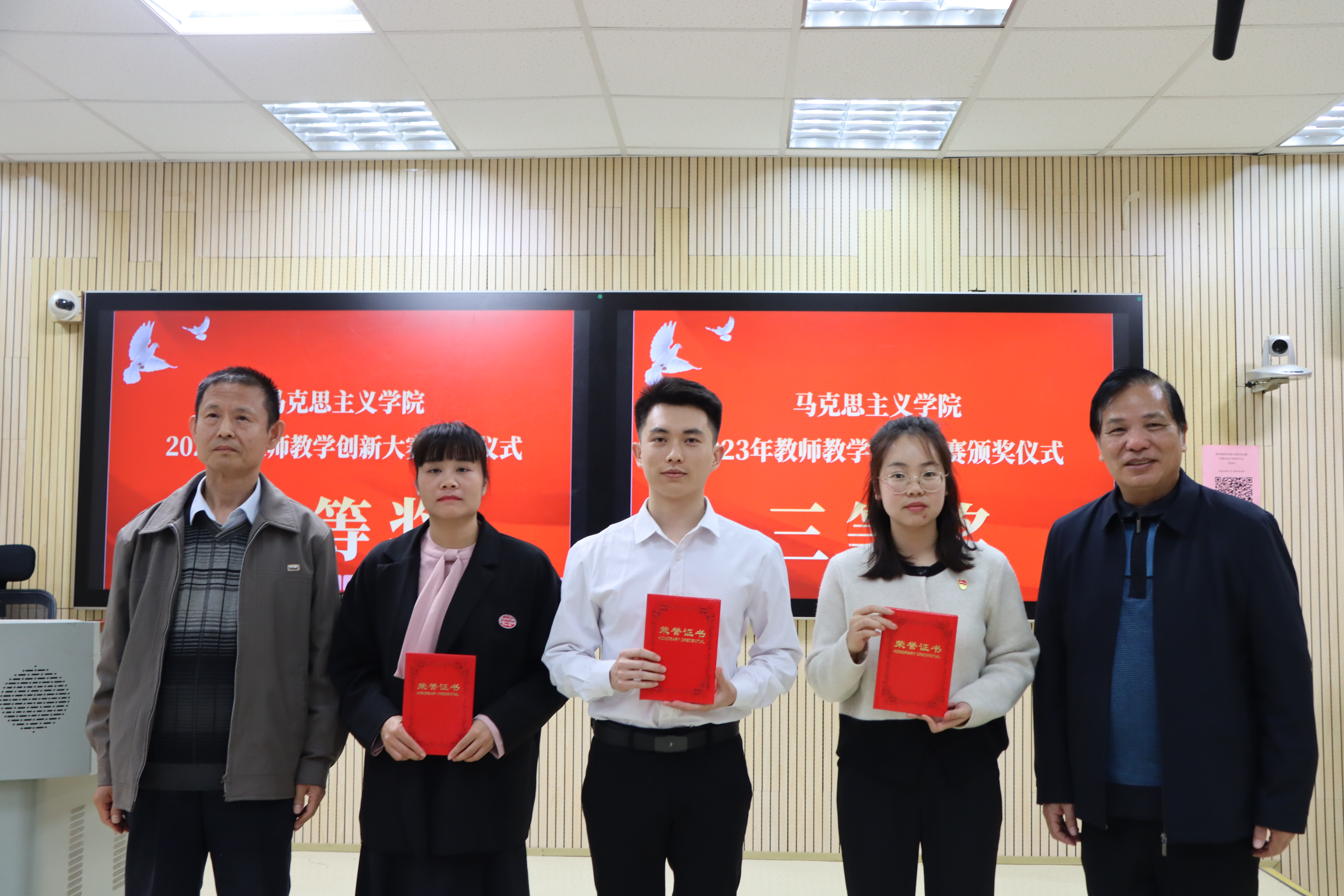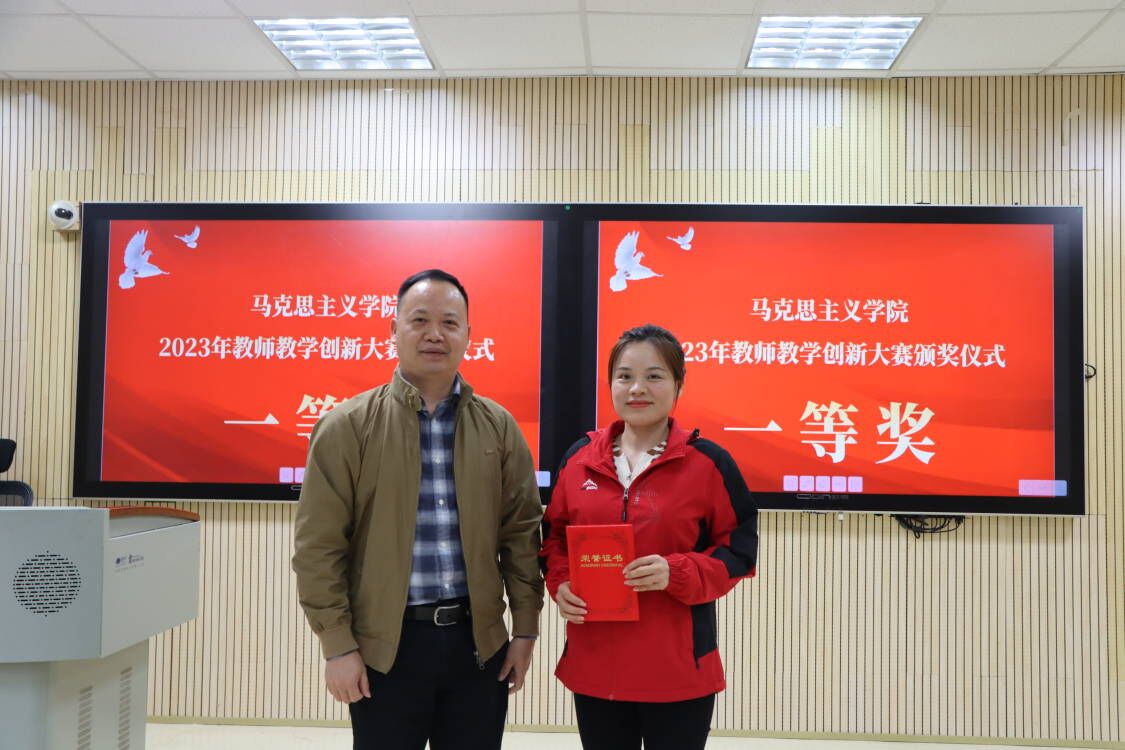 讲台变赛场,每一门课的汇报都各有特色,精彩无限。在赛前,各参赛团队精心准备。在教学展示环节,主讲老师逻辑清晰,语言表达准确,突出以学生为中心、成果导向的教育理念,将理论与实践相结合,信息技术与教育教学相融合,将育人元素充分融入课程教学中、将创新变革贯穿到个教学环节,呈现出充满激情和活力的魅力课堂,彰显了我院教师优良的教学风貌。评委组从教学理念与目标、内容分析、教学创新等多方面对本次比赛进行点评并给予高度肯定。经过严谨客观公平公正评审,最终韦爱丽教师参赛团队获“一等奖”,卢志杰、莫金梅教师参赛团队获“二等奖”,洪润文、赵易、何燕教师参赛团队获“三等奖”,评委组为获奖教师颁发证书。