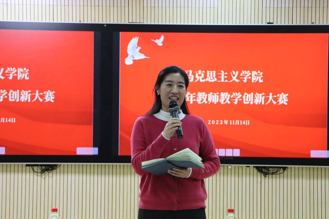 为扎实推进学校“特色鲜明、国内知名的应用技术大学”建设,稳步提升人才培养质量,激发教师的教学创新热情,启发教师教学创新思路,推动“课堂革命”,打造“金课”。11月14日下午,马克思主义学院2023年教师教学创新大赛教学活动在行政楼123进行。本次比赛特邀学校党委办公室、校长办公室主任、 宣传部部长陈铁、学生工作处处长王静静、马克思主义学院院长董艳以及韦胜强教授和陈成志教授担任评委。马克思主义学院全体教师到场观摩学习。