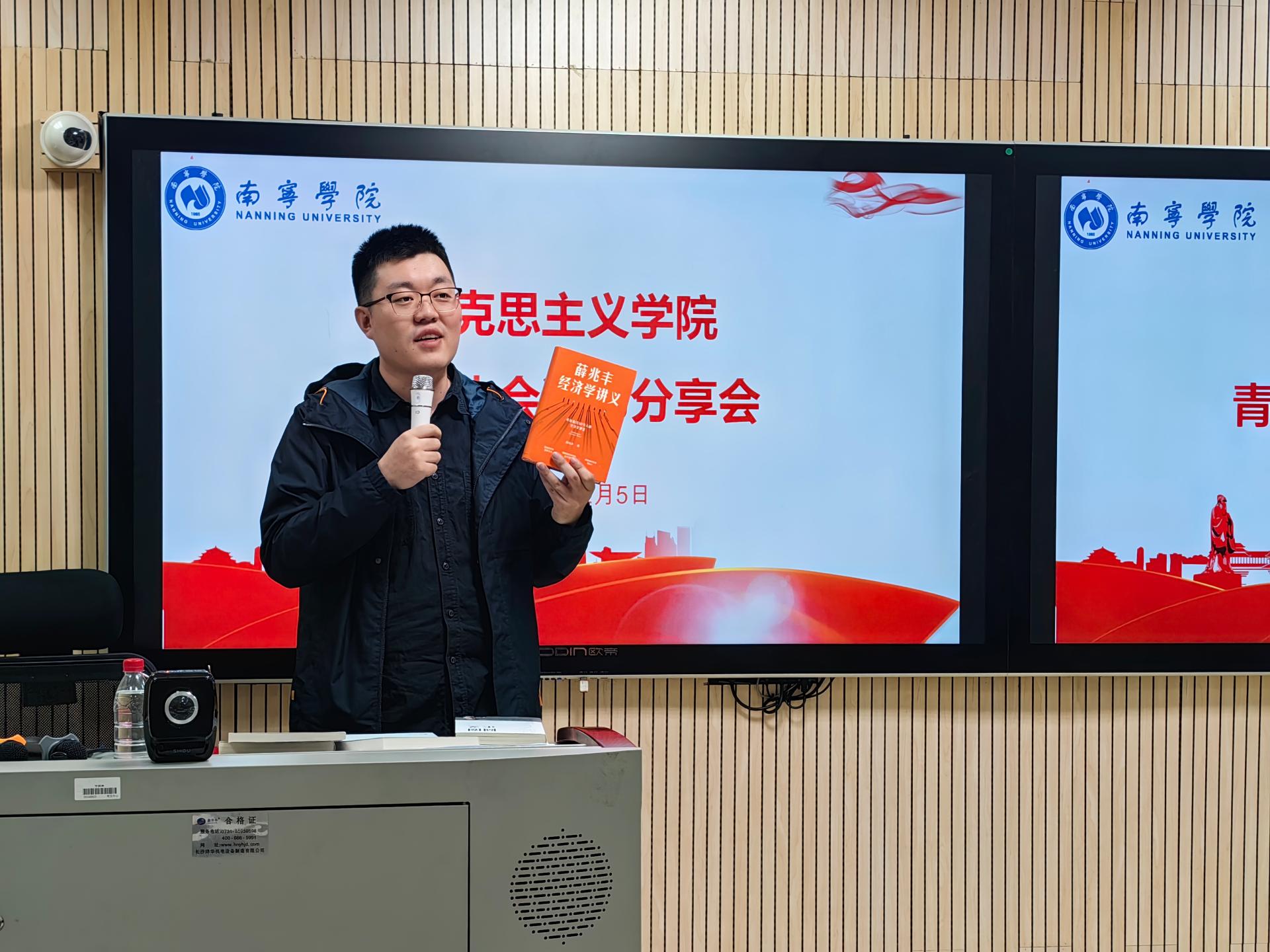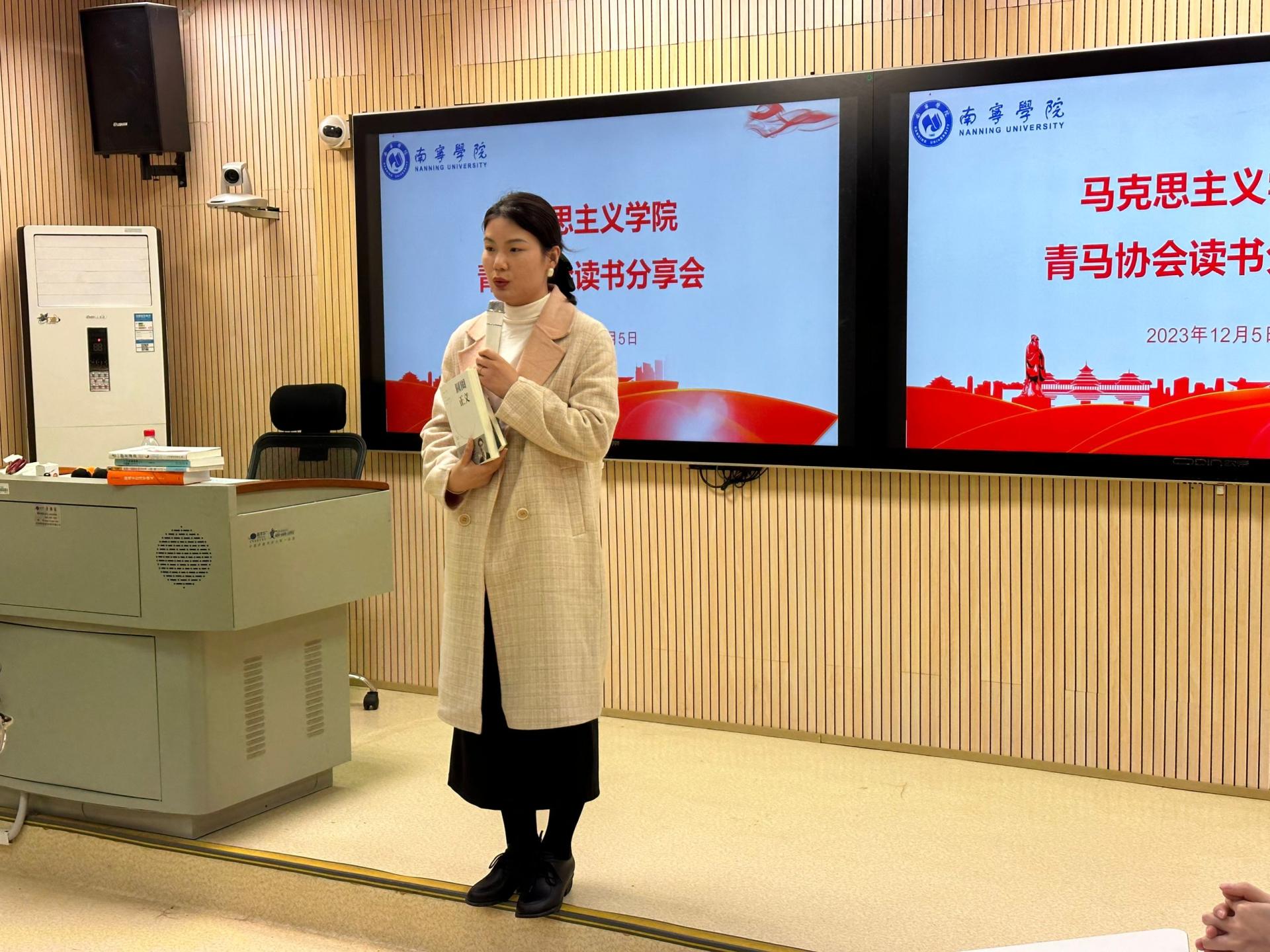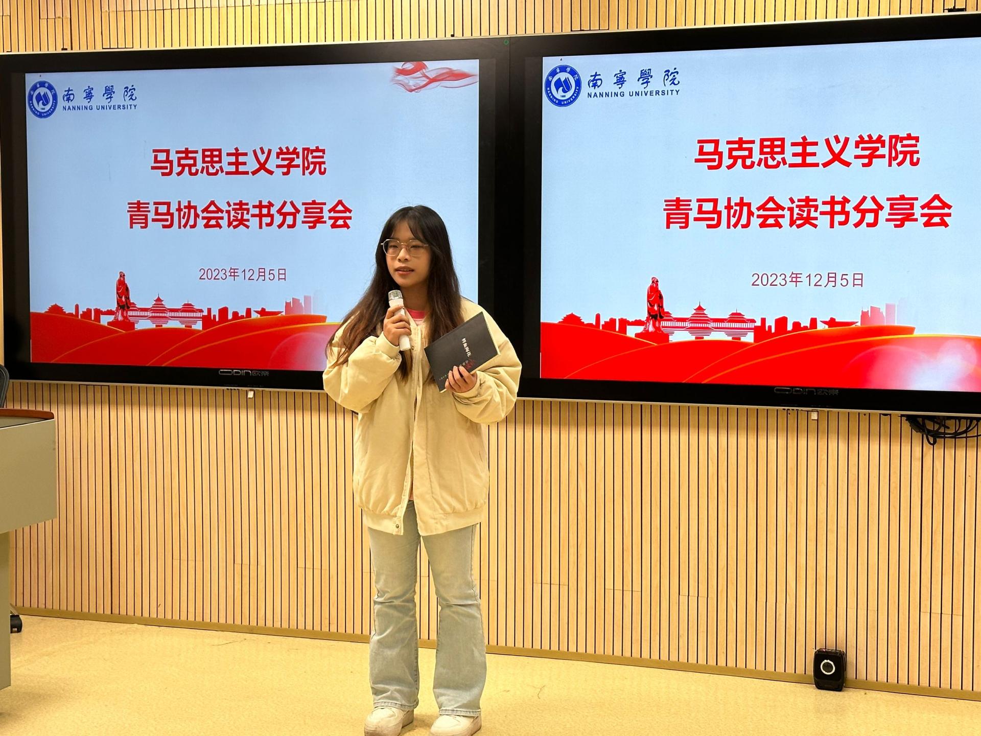 为促进青年马克思主义者相互交流学习,提高同学们的阅读兴趣,鼓励同学们养成好读书、读好书的阅读习惯,2023年12月6日晚,马克思主义学院青年马克思主义协会读书分享会在行政楼123举行,分享会由马克思主义学院耿悦老师、郭萍萍老师主持,协会成员以及学生代表共45人参加。