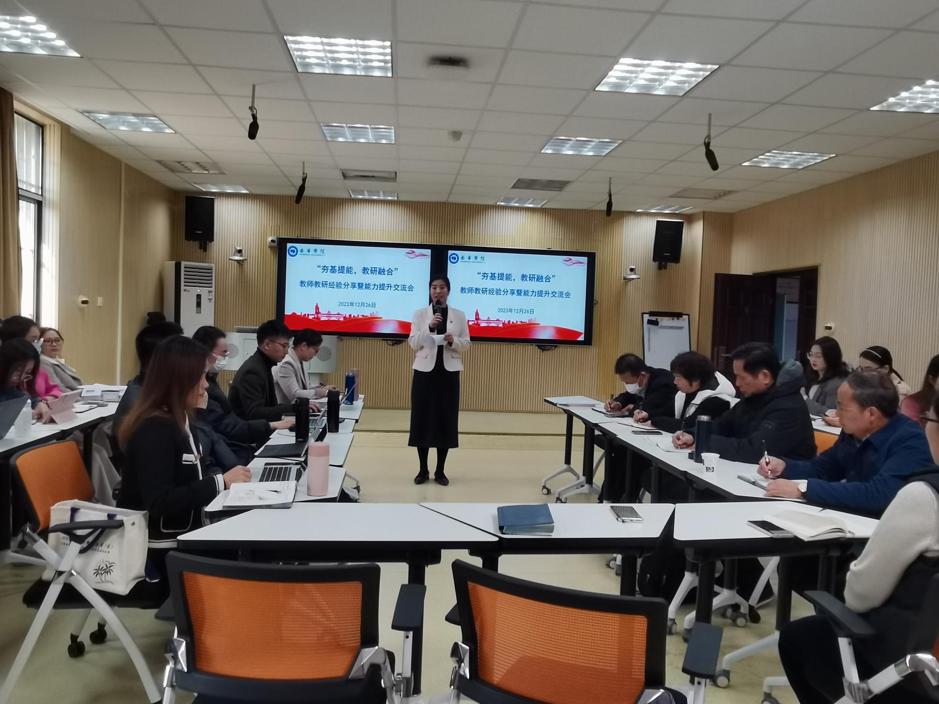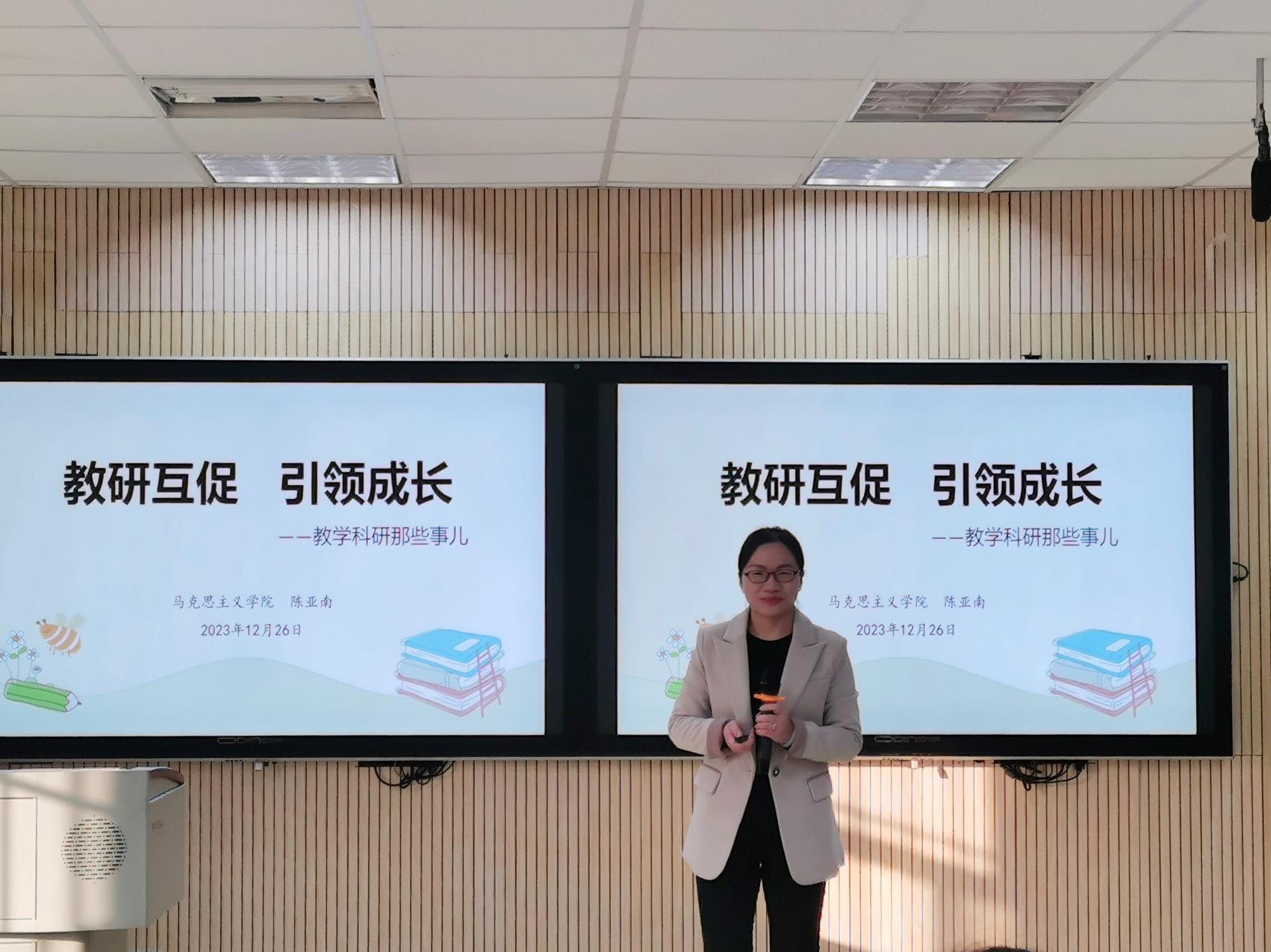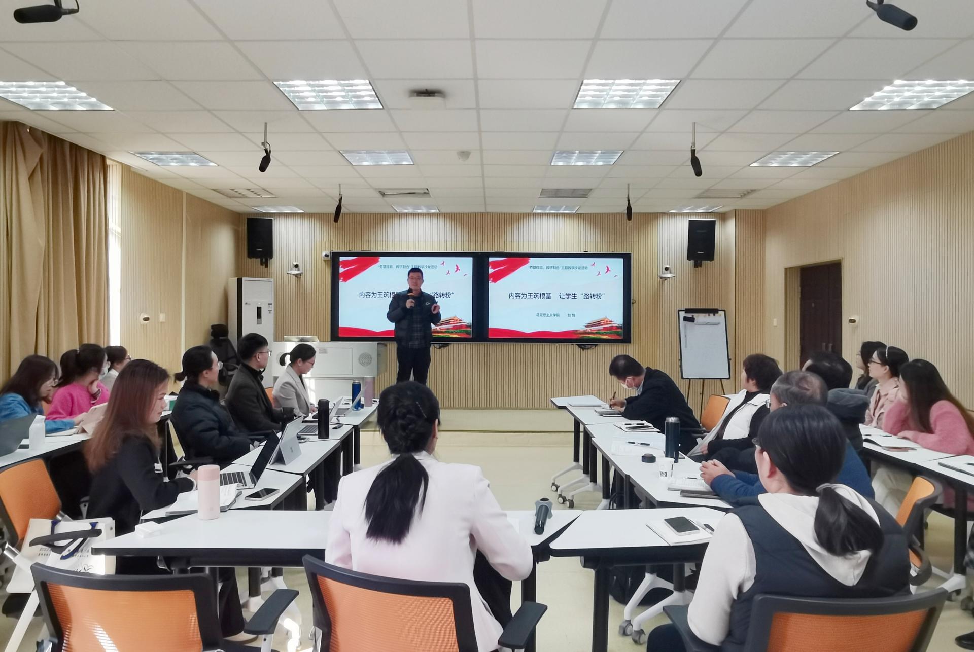 为加强教师间业务交流和沟通,激发教师自主发展内驱动力,推动教学比赛切实转化为推进课堂革命、教改科研、课程建设的有效载体,献礼学校38周年校庆,12月26日下午,由学校教师发展中心主办、马克思主义学院思政课教学创新团队承办的“夯基提能,教研融合”主题教学沙龙在行政楼123教室顺利进行。本次沙龙活动学校副校长陈雄章教授莅临指导,思政课教学创新团队负责人董艳主持。