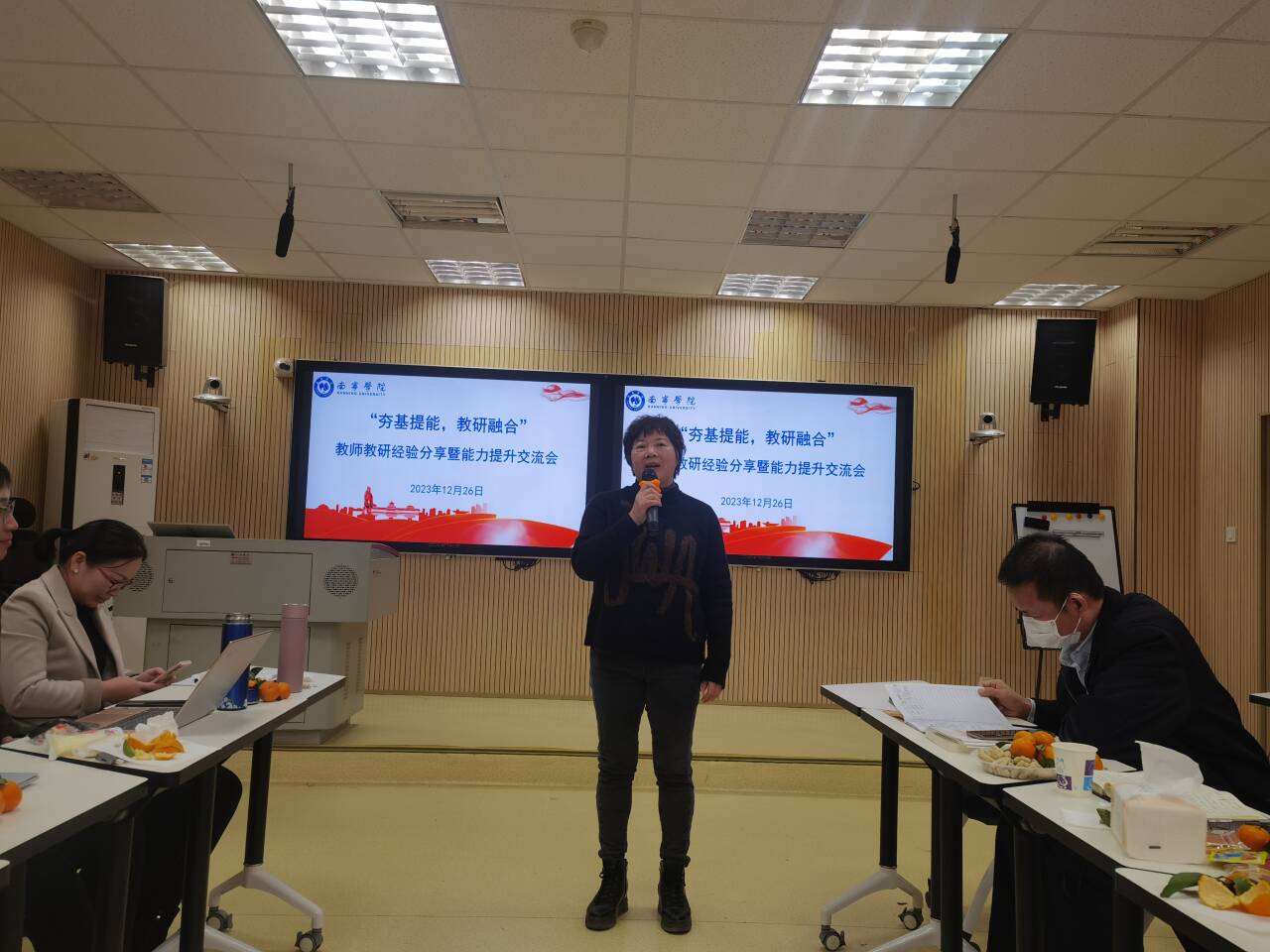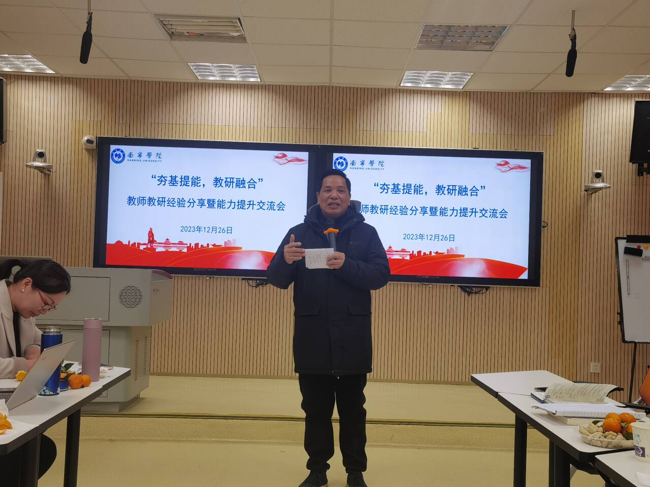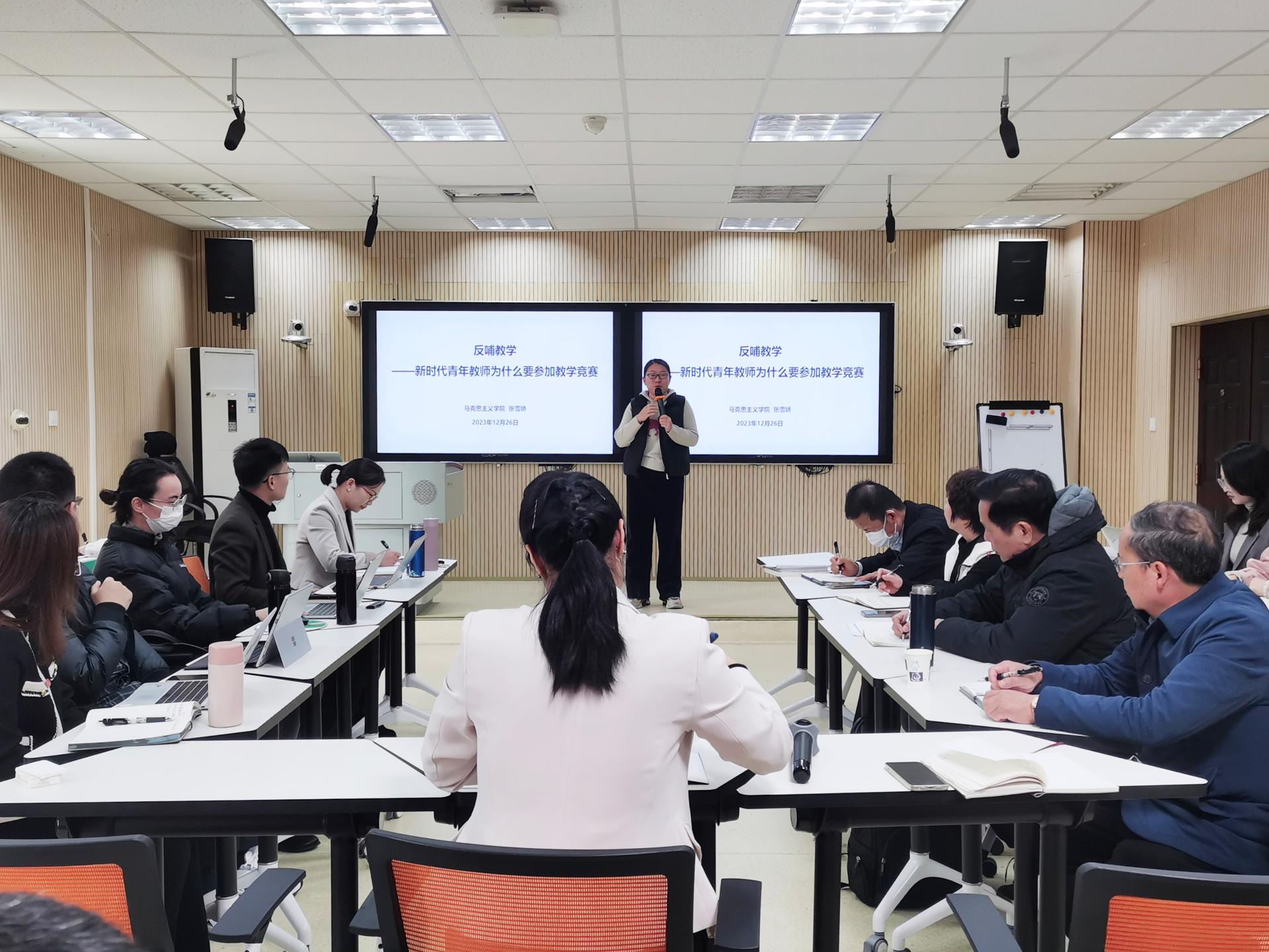 为加强教师间业务交流和沟通,激发教师自主发展内驱动力,推动教学比赛切实转化为推进课堂革命、教改科研、课程建设的有效载体,献礼学校38周年校庆,12月26日下午,由学校教师发展中心主办、马克思主义学院思政课教学创新团队承办的“夯基提能,教研融合”主题教学沙龙在行政楼123教室顺利进行。本次沙龙活动学校副校长陈雄章教授莅临指导,思政课教学创新团队负责人董艳主持。