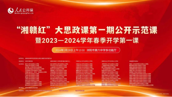 为推进“大思政课”建设,推动思政课程改革创新,2月28日,“湘赣红”大思政课第一期公开示范课暨2023—2024学年春季开学第一课在浏阳市第六中学成功开讲,南宁学院马克思主义学院作为主办单位之一,参与主办首堂“湘赣红”大思政课。本次活动由浏阳市教育局、湖南省高校“大思政课”建设创新中心、中国农业大学和湖南农业大学马克思主义学院、湖南教育电视台发起,依托全国高校思政课“手拉手”集体备课中心(南开大学—湖南省)、全国高校思政课名师工作室(南开大学)等平台,浏阳市委宣传部联合70余家单位共同主办,湖南省高等学校思想政治理论课教学指导委员会提供指导,多方联动育人,聚焦“大思政课”建设成效,协同推进大中小思政课一体化建设。