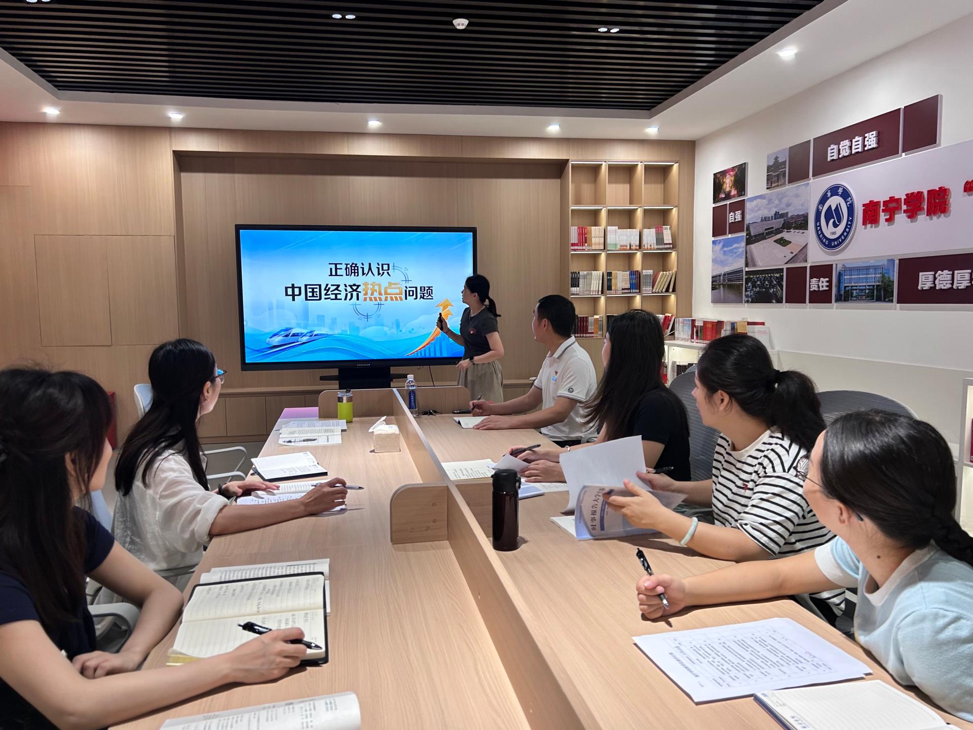 在说课环节中,分别由李宗芝、吴春广两位老师结合秋季学期教学专题,从教学目标、学情分析、教学重难点、教学方法、内容设计、案例选用、互动策略等方面进行全面阐述。李宗芝老师围绕“正确认识中国经济热点问题”这一教学专题采用问题链教学法,引导学生从“现象观察”到“本质分析”,并结合区情、校情、学情帮助学生了解如何运用专业知识赋能中国经济建设。吴春广博士围绕“聚焦建设更高水平平安中国”这一教学专题,从社会治理、法治建设、公共安全等多个维度阐述了建设更高水平平安中国的重要性和具体路径,并就如何激发学生学习主动性与参与度进行了经验分享。