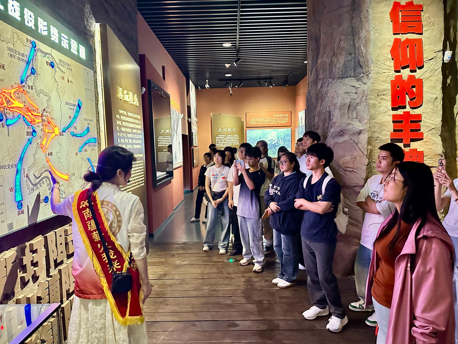 此次实践教学精准挖掘广西本土红色资源,将博物馆陈列展转化为沉浸式思政课堂。在讲解员的带领下,师生们沿着“烽火南疆”的历史脉络,从泛黄的革命文献到锈迹斑斑的战斗武器,从先辈们的生活遗物到定格历史的老照片,每一件展品都成为传递革命精神的“活教材”。这种以实物为媒、以历史为桥的教学方式,让原本停留在书本上的革命故事变得立体鲜活,有效填补了理论教学与历史实践之间的空白。