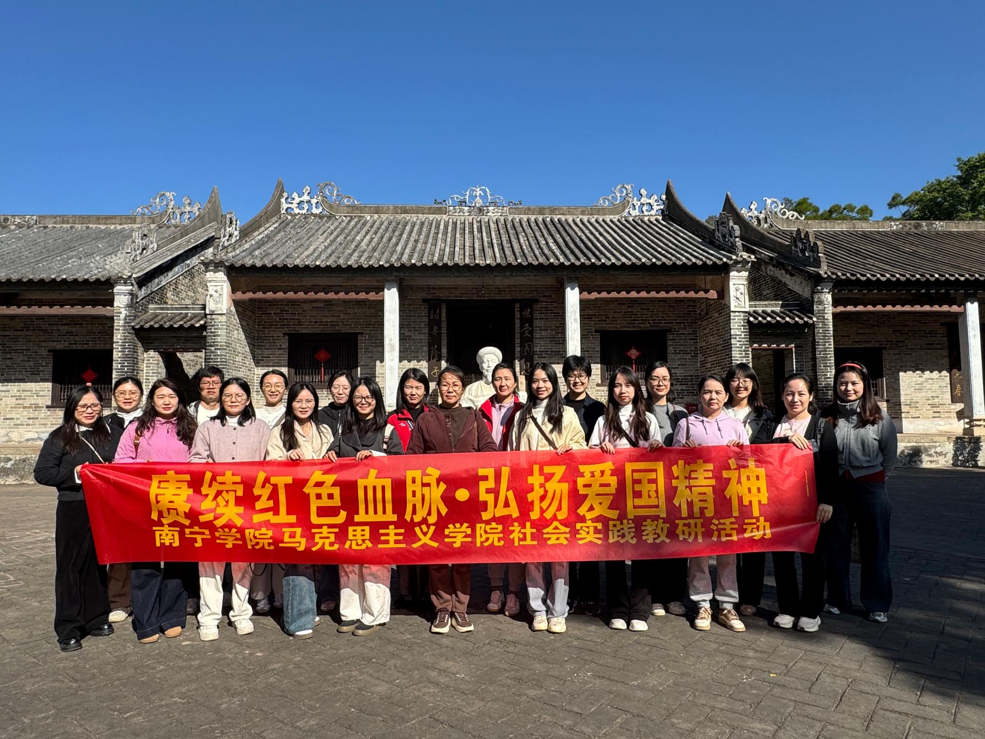 为深入学习贯彻习近平新时代中国特色社会主义思想,充分挖掘爱国主义教育资源与地方历史文化的育人价值,2025年11月29日,南宁学院马克思主义学院思想道德与法治教研室组织25名教师,赴钦州市开展“赓续红色血脉・弘扬爱国精神”主题实践活动。