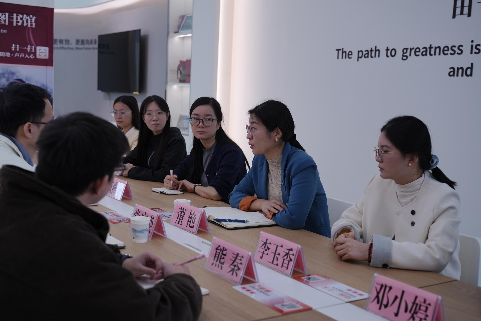 随后,双方就“大思政课”建设、基地共建等方面进行座谈交流,董艳院长表示,此次合作是学院推动“大思政课”建设的重要举措,她强调,思政教育不能局限于课堂说教,要充分利用社会资源与前沿技术赋能课程建设,并结合广西区情和校情实际,让学生在身临其境的体验中感悟思想伟力、汲取奋进力量。广西茜英信息技术有限公司总经理党广炎表示,将依托沉浸式技术优势,全力支持学校开展思政实践教学和党建活动,为师生开展实践教学活动提供便利条件。
