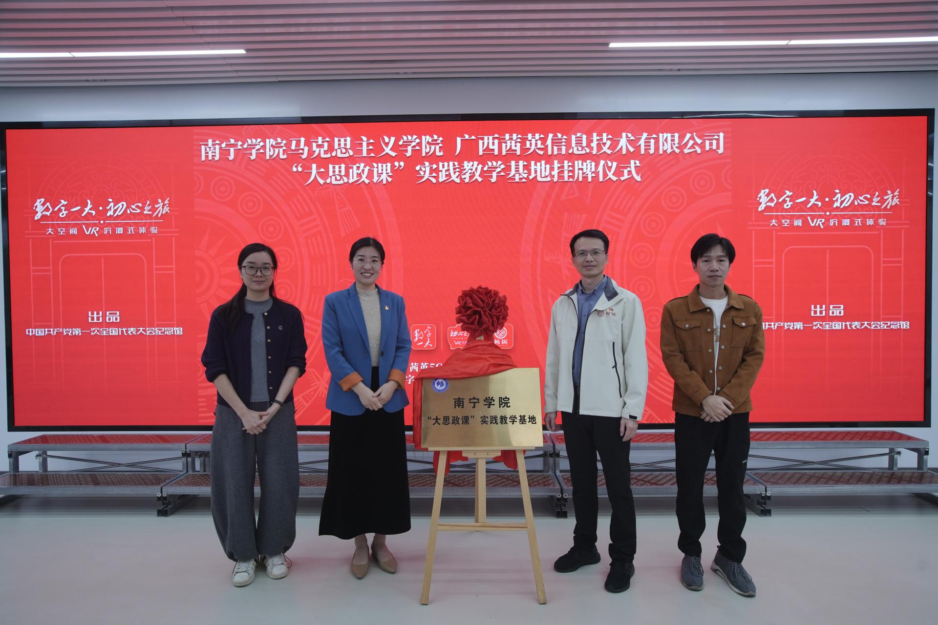为推动学校“大思政课”改革创新,探索多元协同育人模式,拓展思政教育空间,打通“思政小课堂”与“社会大课堂”的融合路径。2025年12月12日上午,马克思主义学院师生代表一行30人在董艳院长的带领下赴广西茜英信息技术有限公司5G-A沉浸式大空间举行“大思政课”实践教学基地签约挂牌仪式,并开展实践教学活动。