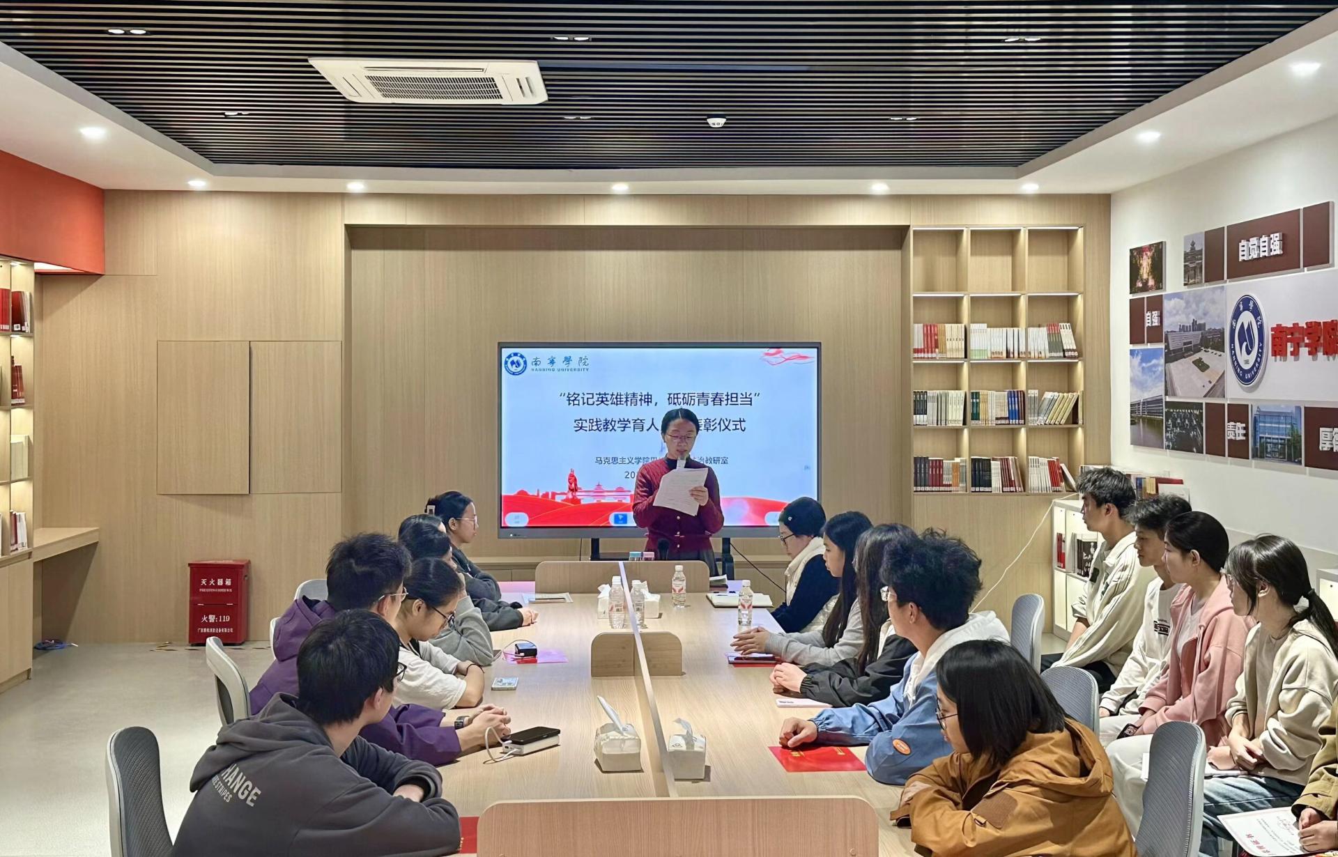 12月18日下午,马克思主义学院思想道德与法治教研室在英雄书屋举办“铭记英雄精神 砥砺青春担当”实践教学育人成果表彰仪式。马克思主义学院副院长张雪娇出席活动并发言,教研室全体教师、2025级学生代表参加活动。