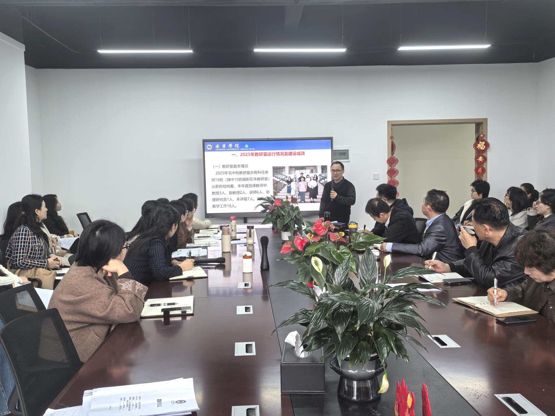 会议伊始,各教研室主任(课程负责人)依次对本教研室(课程)建设进行年度工作总结与汇报。七位负责人分别重点展示了教研室(课程)2025年在推动教学模式创新、服务“大思政课”建设、学术研究及党的创新理论融入教学全过程的成果。同时结合各教研室的建设情况,梳理了2025年存在的不足,并对2026年主要工作进行了提前谋划和思考。大家的汇报内容扎实,集中反映了一年来各教研室在教育教学、学术研究、团队建设上取得的长足进步。
