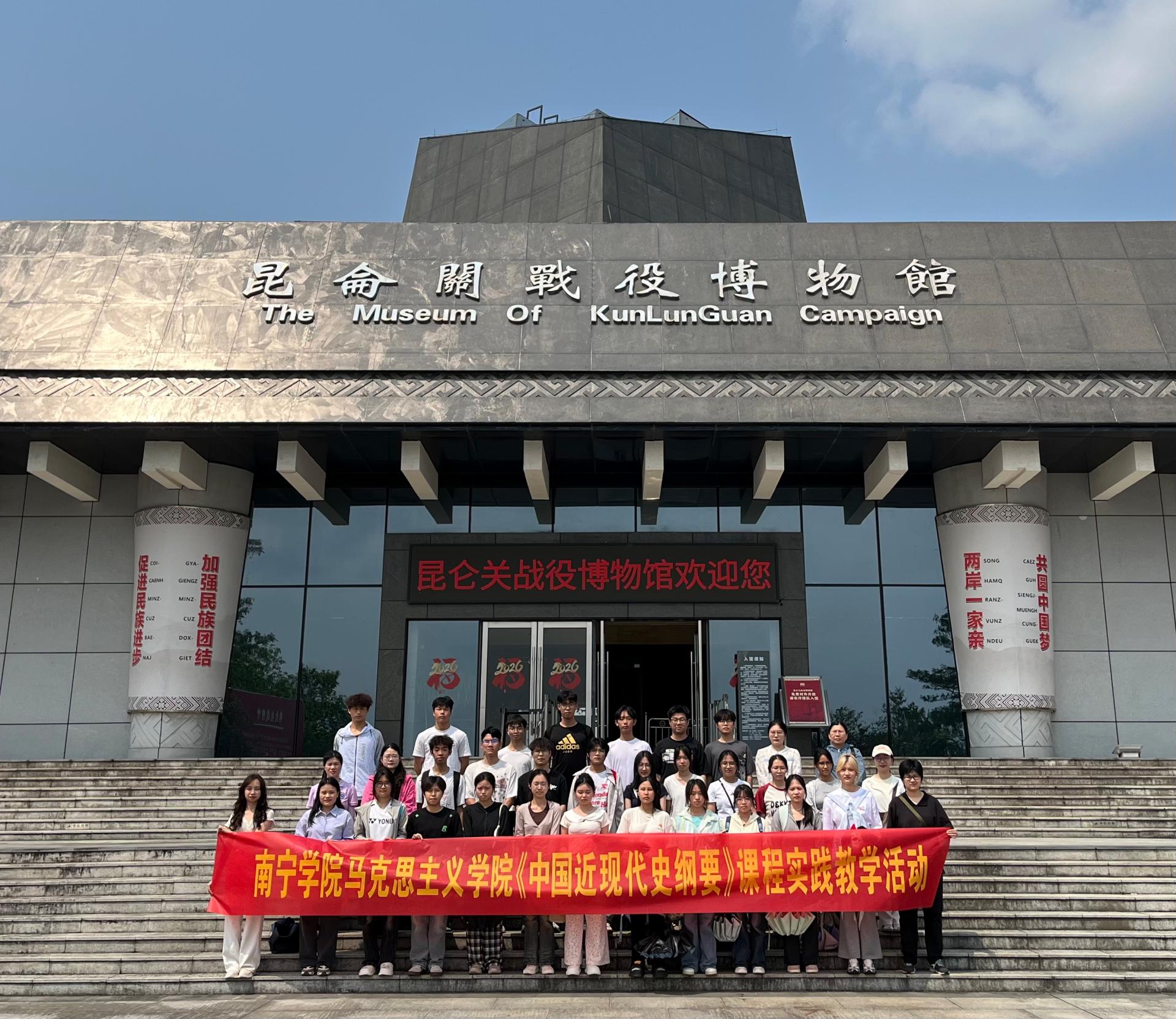 清明节来临之际,为缅怀为民族独立、人民解放和国家富强、人民幸福作出巨大贡献和牺牲的英雄烈士,加强大学生爱国主义教育,引导青年大学生了解英雄故事、感知英雄情怀、领悟英雄精神、学习英雄品格,形成崇尚英雄、争做先锋的良好氛围。3月26日,马克思主义学院中国近现代史纲要教研室组织师生代表35人前往昆仑关爱国主义教育基地开展实践教学活动。