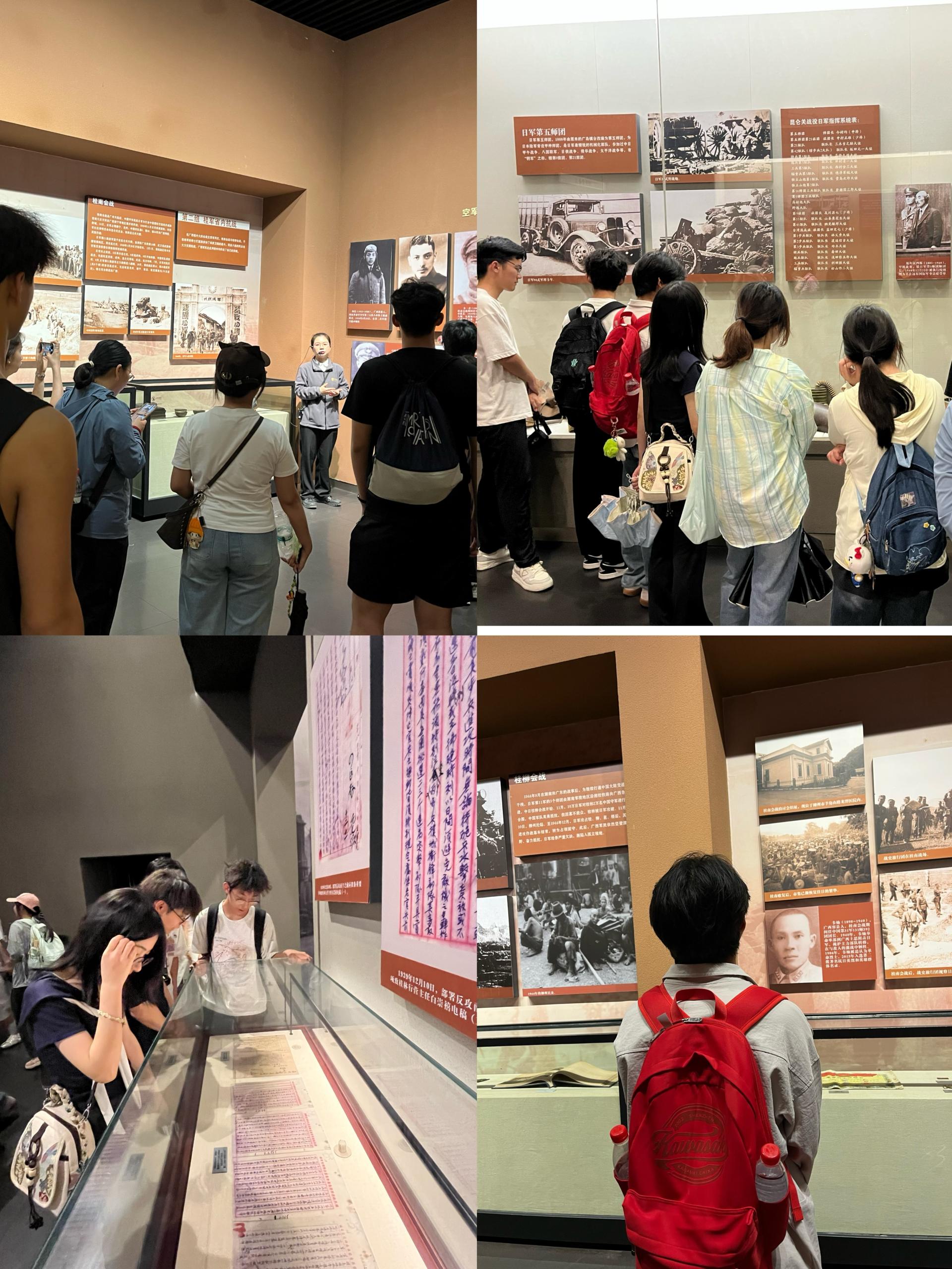 师生们首先来到昆仑关战役博物馆。在讲解员带领下,师生依次参观“中国抗战”“昆仑关战役”“广西与抗战”“缅怀英烈”四个展陈部分。馆内战场实景音效模拟让师生仿佛置身炮火轰鸣、枪林弹雨的战场,深切感悟中国军民浴血奋战的英勇精神。同学们神情专注,不时驻足凝思,在声光电交织的深度体验中,激发爱国主义情感。