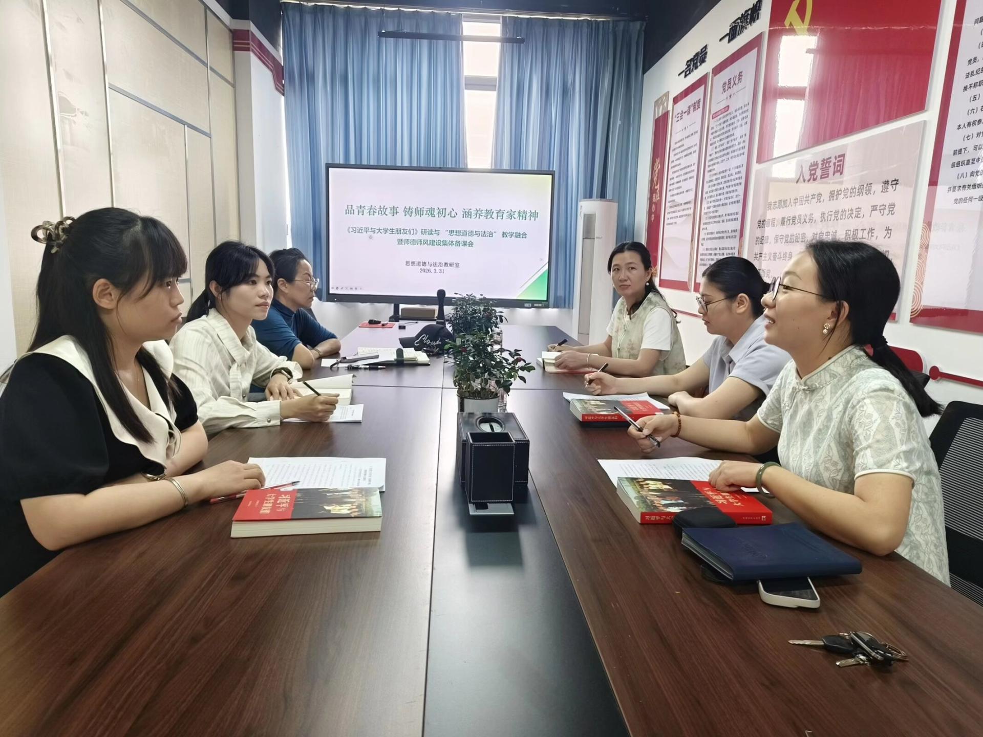 为贯彻落实教育部、自治区教育厅关于高校思政课质量提升行动及师德师风建设的有关要求,进一步打造书香马院,厚植思政课教师师德根基、坚守育人初心,同步提升教师专业素养与师德修养水平。3月31日下午,思想道德与法治教研室在青工楼210会议室围绕《习近平与大学生朋友们》(第一卷、第二卷)开展了一场融合读书分享、师德师风教育与课程教学的集体备课会。