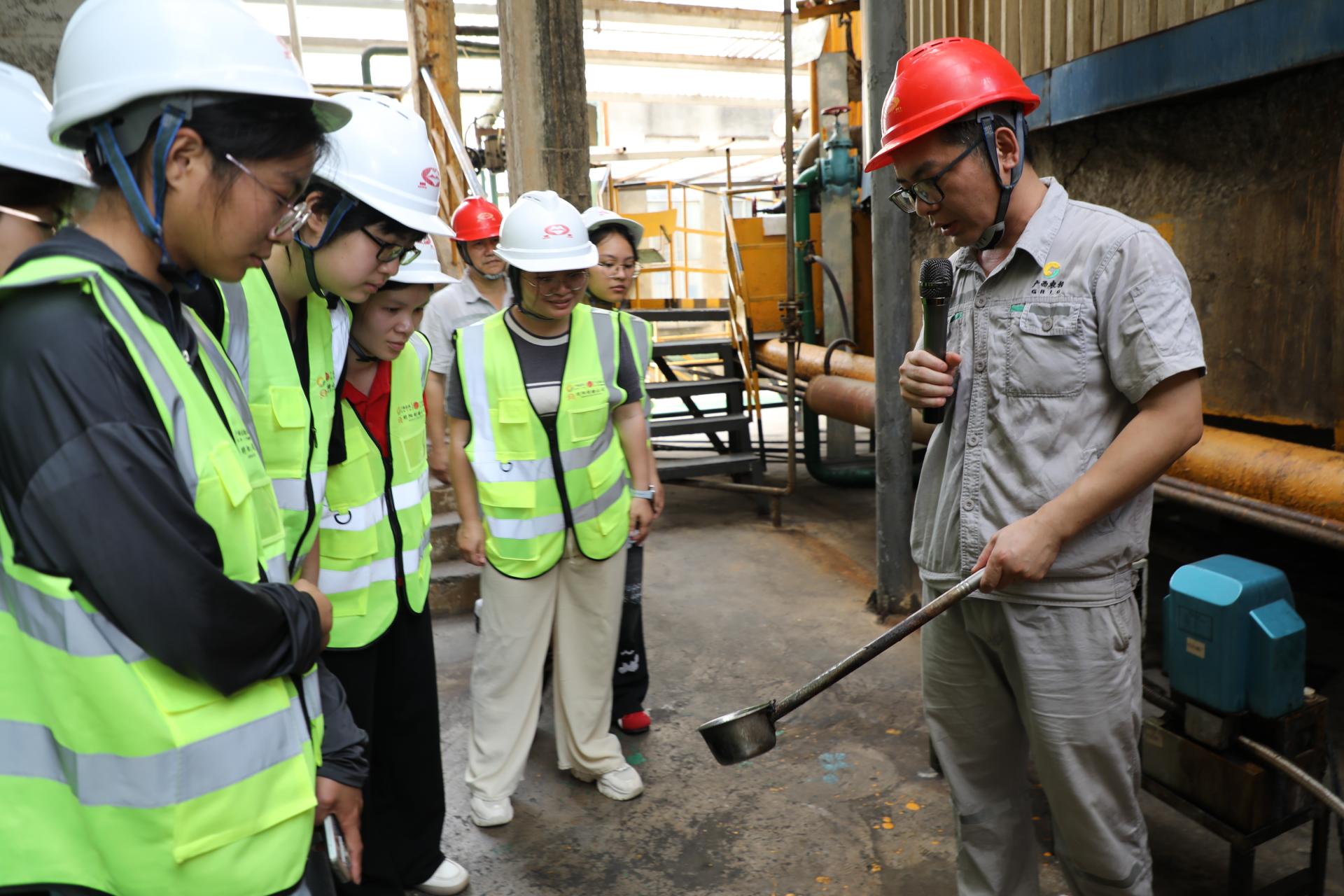 活动伊始,公司党委副书记黄宝智对到访师生表示热烈欢迎,并介绍企业发展概况。随后,公司部门经理蓝宏丹详细讲解了制糖生产工艺流程,何静经理开展了生产一线安全知识专项培训。师生们深入企业展厅与生产车间,近距离观摩甘蔗压榨、蒸发、煮糖、成品振筛、自动装包、机械手码垛等全流程生产工艺,企业技术人员全程陪同讲解,结合设备与操作流程耐心解答专业问题。活动设置生产体验环节,师生动手参与操作,把课堂理论知识与制糖生产实际紧密结合。校企协同的实践安排,将思政课堂延伸至产业链一线。