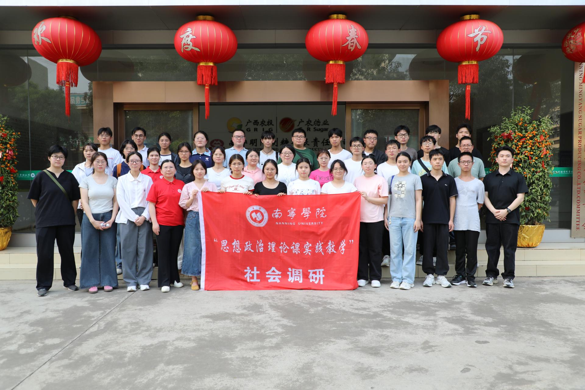 为深入推进“大思政课”建设,推动思政小课堂与社会大课堂深度融合,引导青年学生了解地方产业、服务地方发展,4月7日下午,南宁学院马克思主义学院在副院长张雪娇带领下,组织师生一行42人,走进南宁明阳制糖有限责任公司,把思政课堂搬到生产一线,开展实践育人活动。
