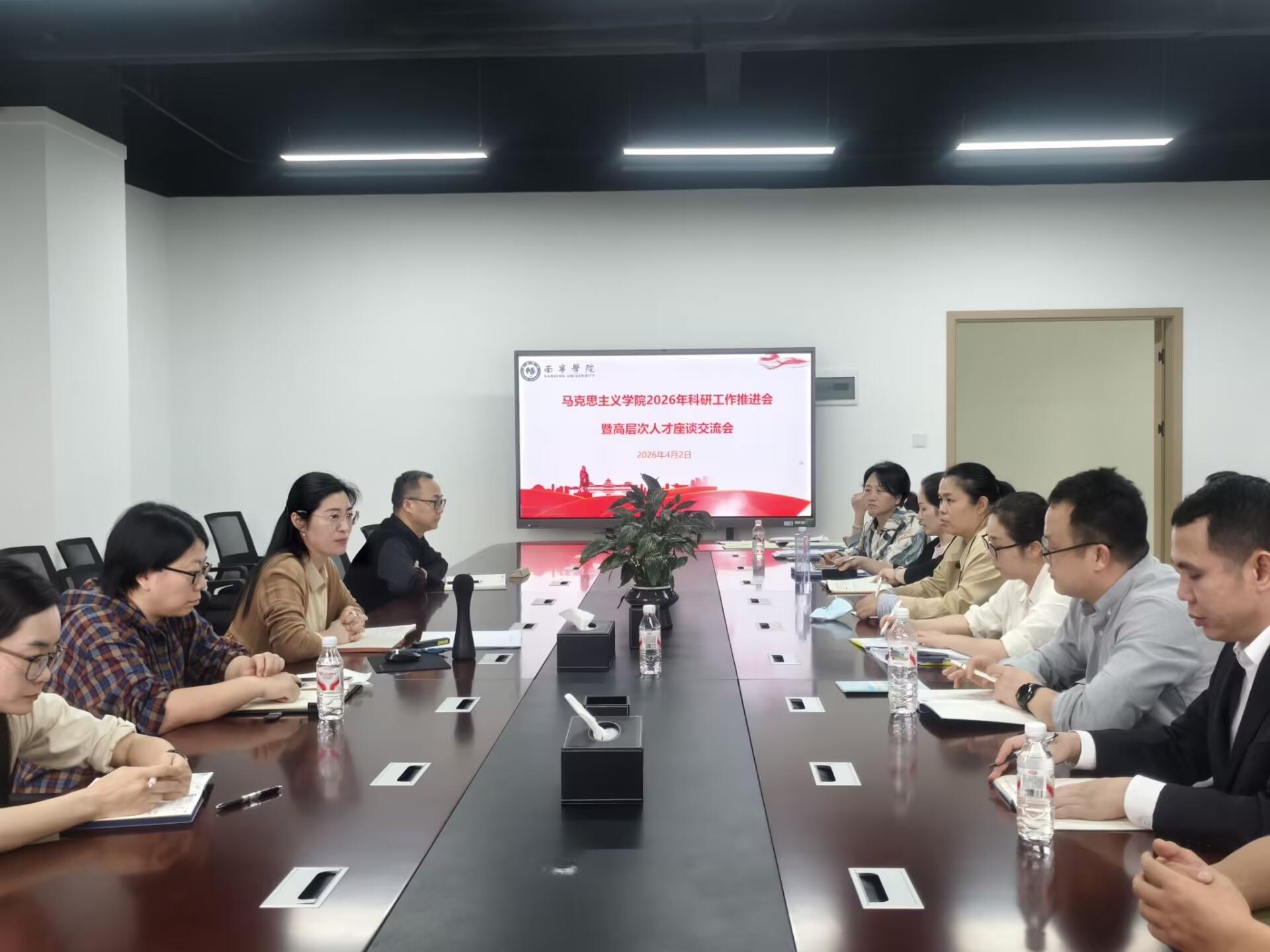为全面推进学院科研事业高质量发展,坚守马克思主义理论研究阵地,4月2日下午,学院召开2026年科研工作推进会暨高层次人才座谈交流会。学院领导班子成员、高层次人才及教师代表参会,共商年度科研发展与人才建设工作。